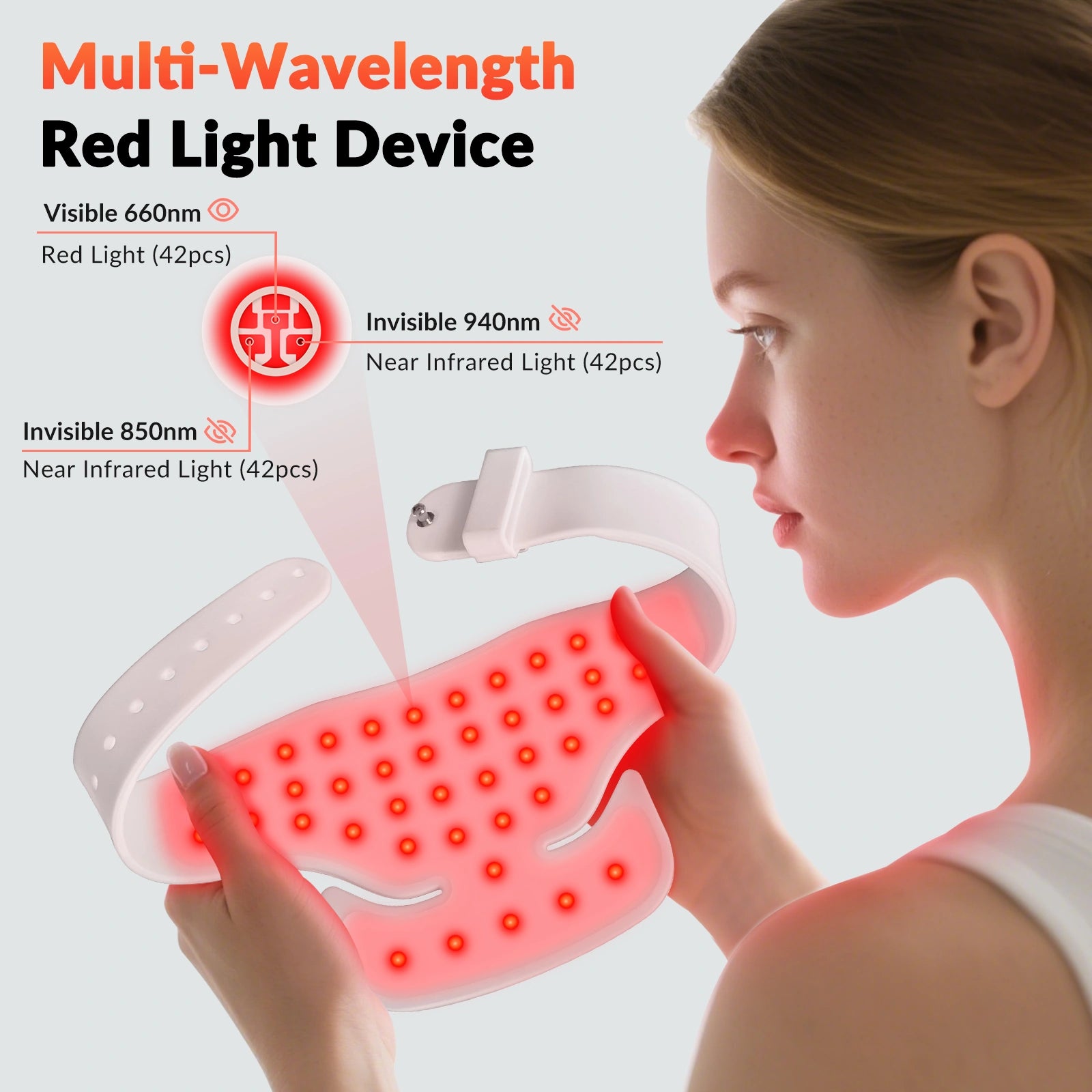 • Triple Wavelength Synergy: Our neck wrap features a precise combination of 660nm, 850nm, and 940nm wavelengths to deliver targeted benefits. The 660nm red light targets the skin, helping to boost blood flow. 850nm infrared light penetrates deep into the skin, offering support for easing discomfort.940nm infrared light reaches even deeper into joints, aiding in reducing joint-related discomfort.