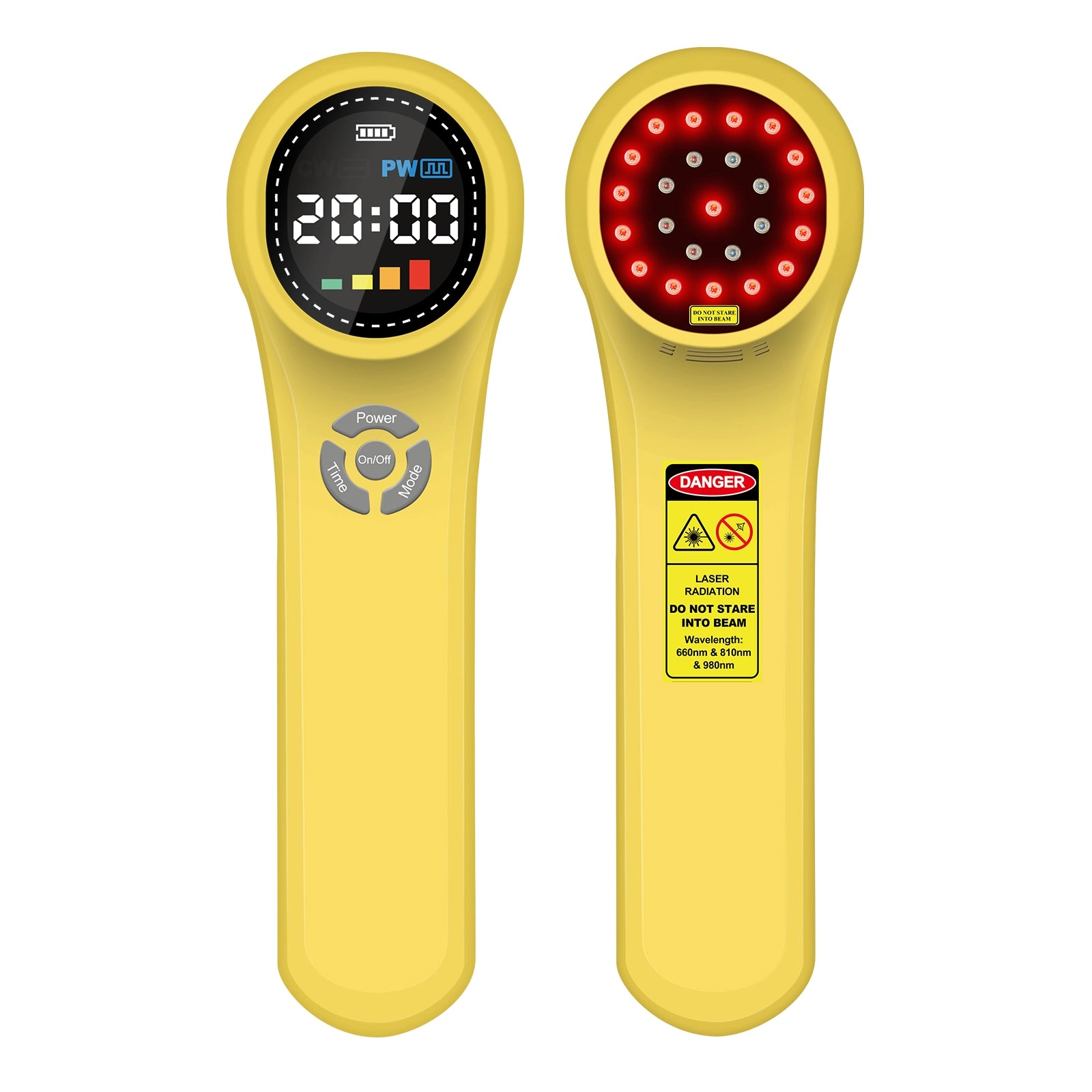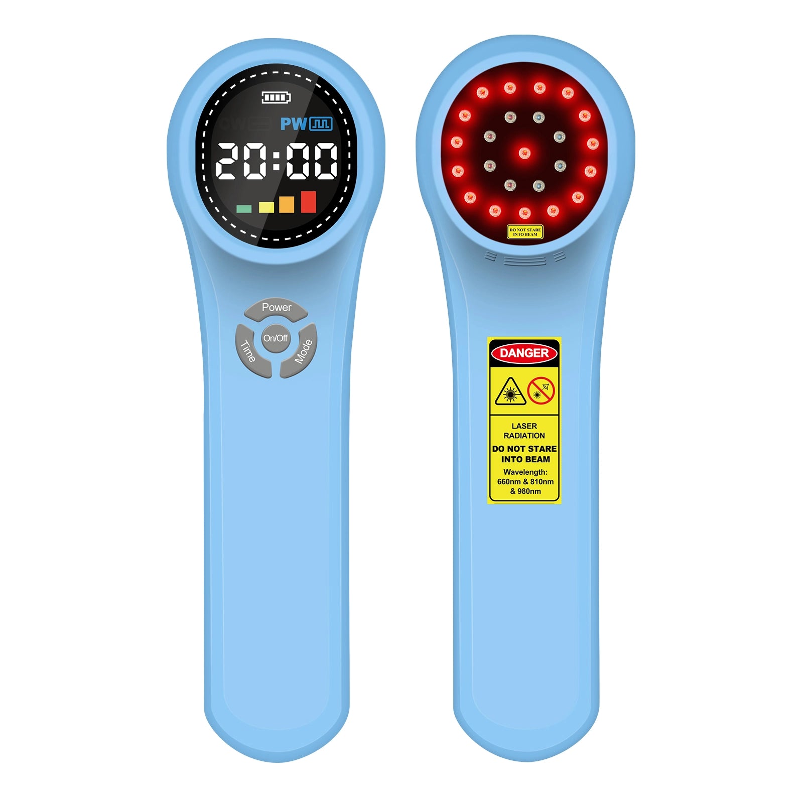 • Tri-Wavelength Technology 660nm, 810nm, 980nm: 660nm red light: Absorbed by skin to enhance collagen production and support skin health. 810nm near-infrared light: Penetrates deep into tissues to accelerate muscle recovery and reduce stiffness.980nm infrared light: Targets deep joint pain for arthritis, knees, shoulders lasting relief. (Note: 808nm you can only see red dots when working, 980nm is totally invisible)
